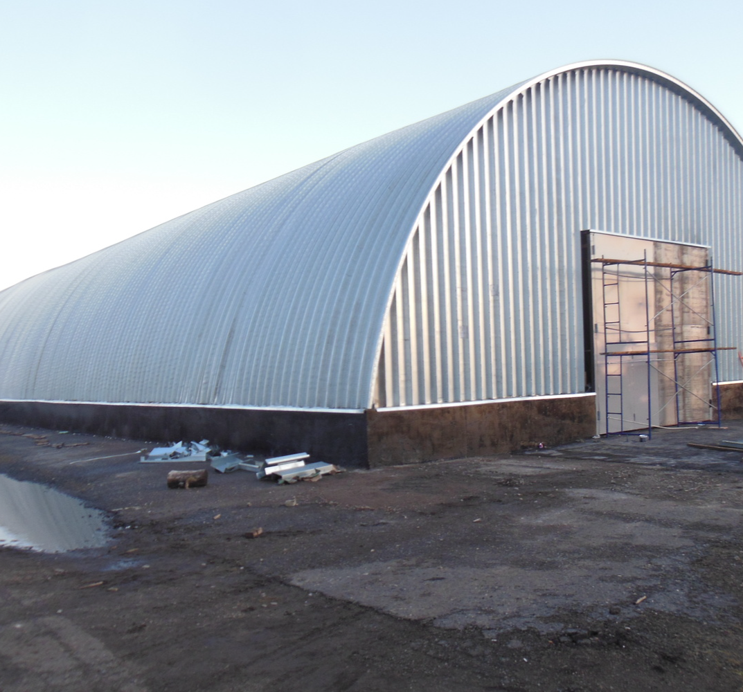 При проектировании и строительстве зернохранилищ необходимо учитывать не только климатические нагрузки (ветровые, снеговые и т.п.), но и нагрузку, оказываемую зерновой массой на стенки зернохранилища. Как правило при напольном хранении зерна насыпью внутри ангара сооружаю опорные стенки.
