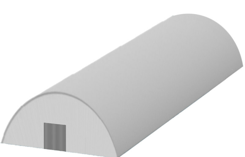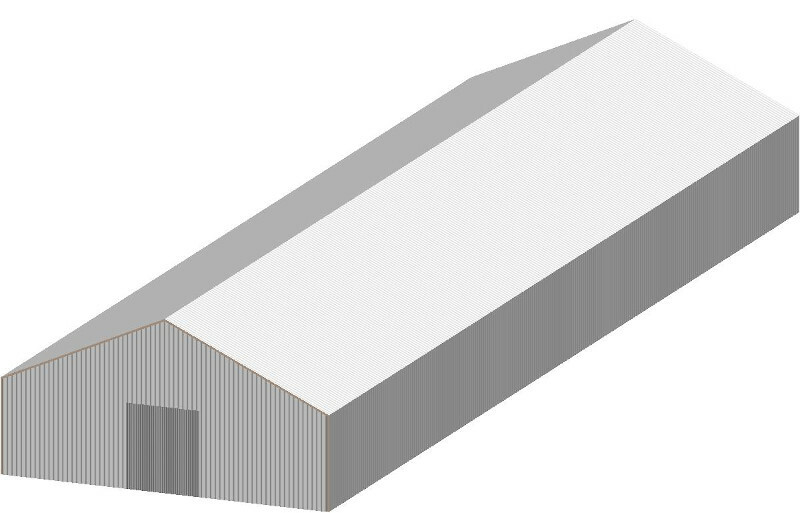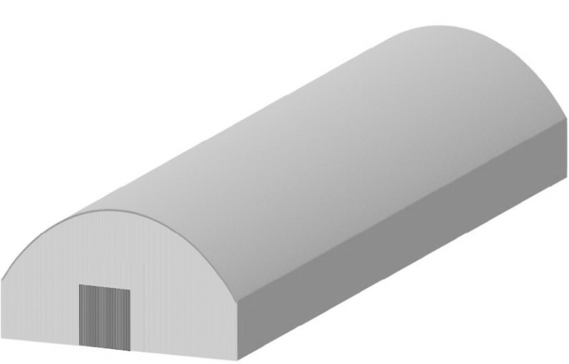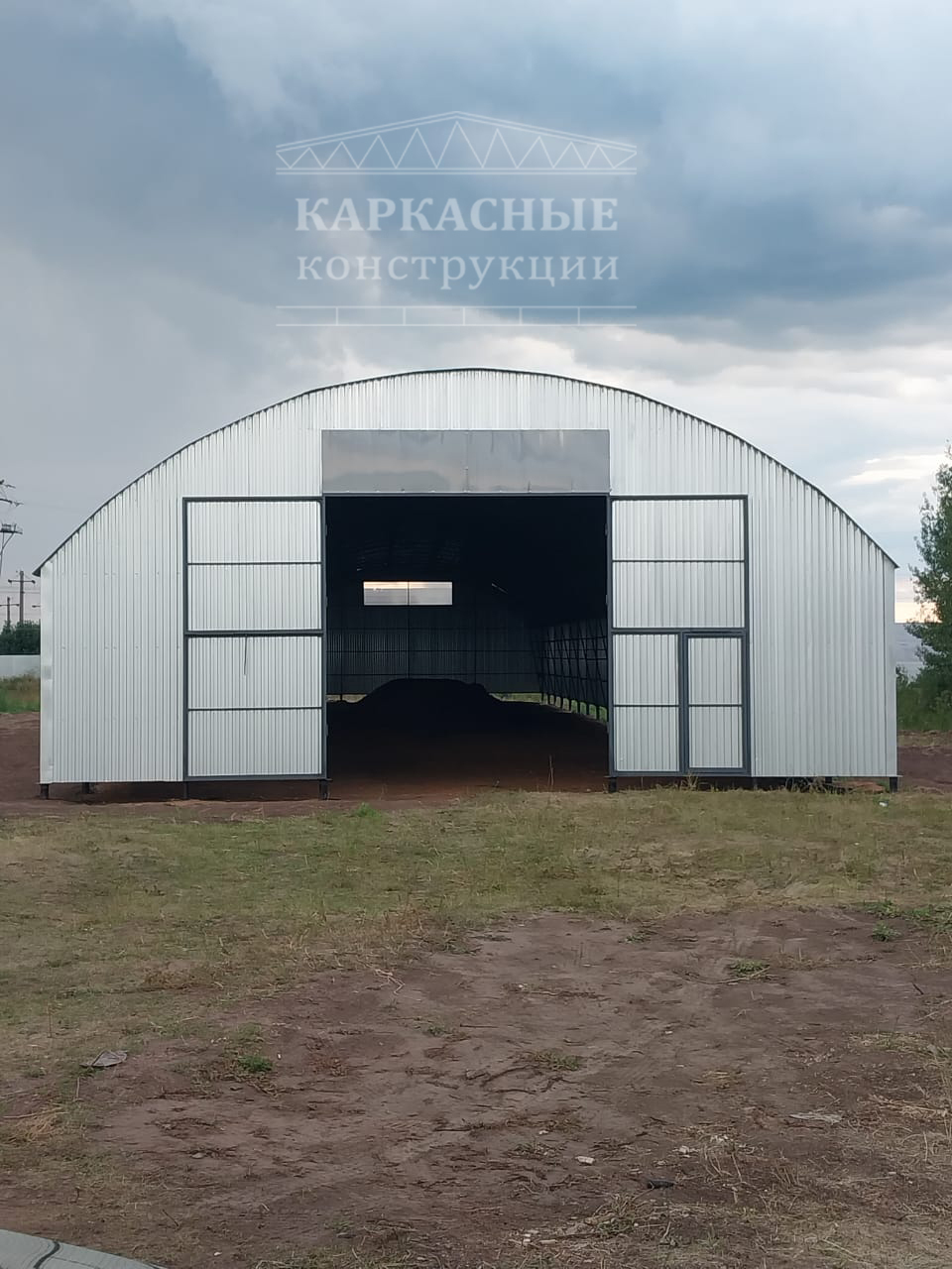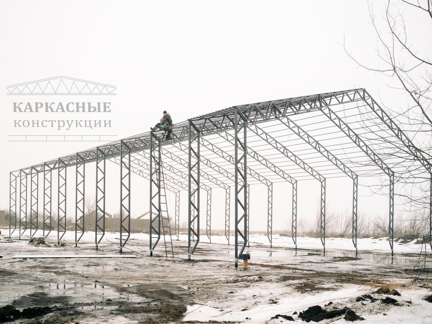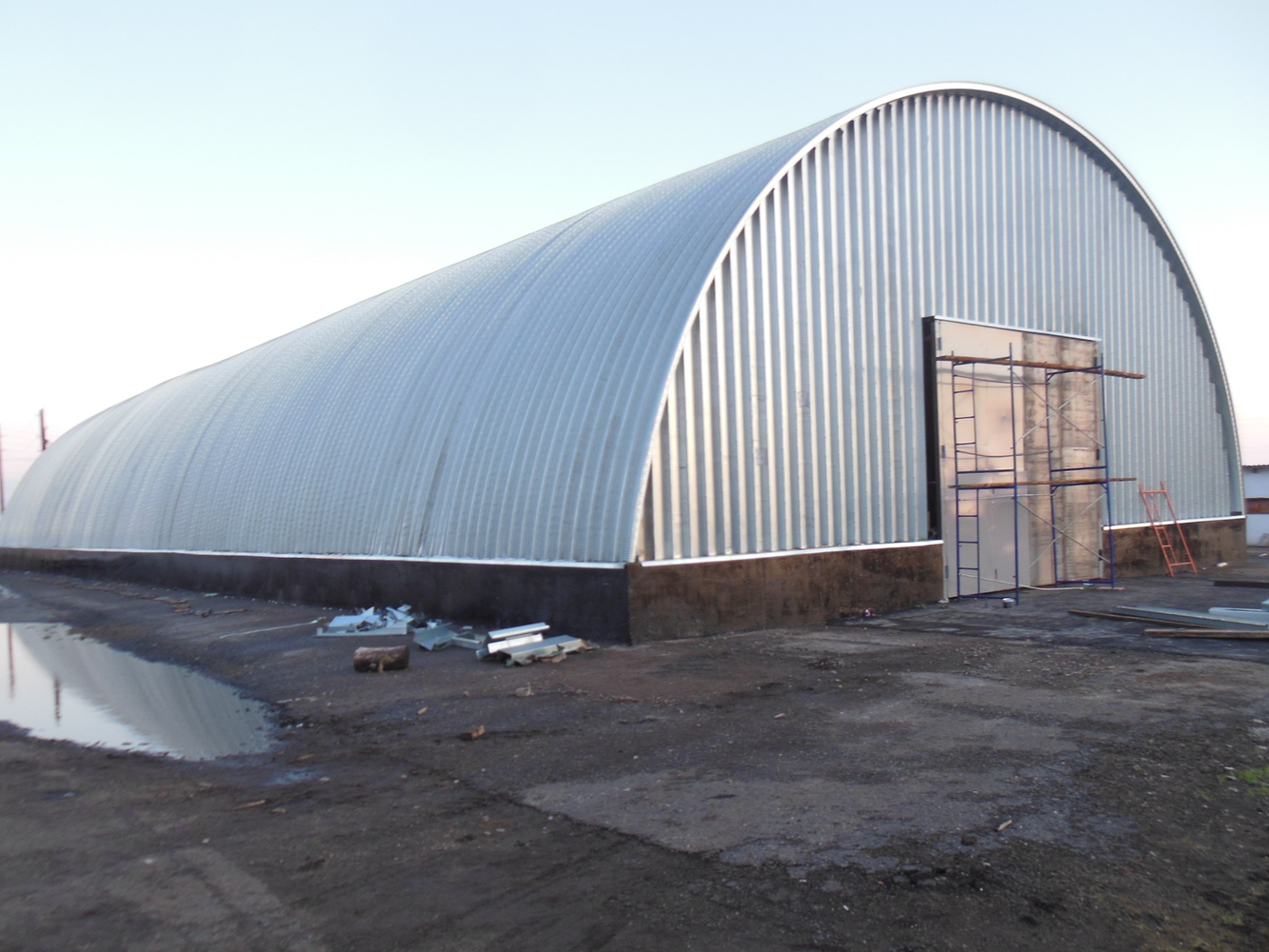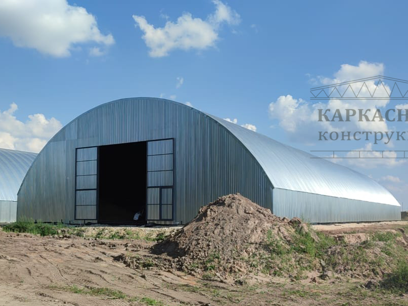 Ширина пролёта: от 10 до 30 м.Каркас ангара из профильной трубы с вертикальной сеной и арочный крышей.